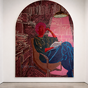 Shabazz Larkin is a multidisciplinary contemporary American artist working across painting, sculpture, murals, public art, and text. Drawing from portraiture’s long tradition and the enduring language of the monument, he approaches each work as a structure built to hold presence against time. Whether in a gallery or on a city wall, Larkin treats every piece as a monument. His figures emerge through the visual language of the sacred and the ornamental, shaped by Black diasporic traditions and American history. His work exists in conversation with artists who expanded the language of contemporary art. Like Jenny Holzer and Barbara Kruger, using text as form and material. Like Andy Warhol and Norman Rockwell, he engages the mythmaking of American life, while echoing Marcel Duchamp and Virgil Abloh’s tradition of recontextualizing everyday objects as cultural artifacts. Language enters the work as literature, inscription, and invocation, sharpening the image into communal testimony. Anchored by themes of fatherhood and community and guided by contemplative spiritual practice, Larkin’s works act as both empathetic witness and cultural protection. Through portrait, sculpture, and public installation, his monuments hold space for tenderness and power to coexist, where presence itself becomes the central act.