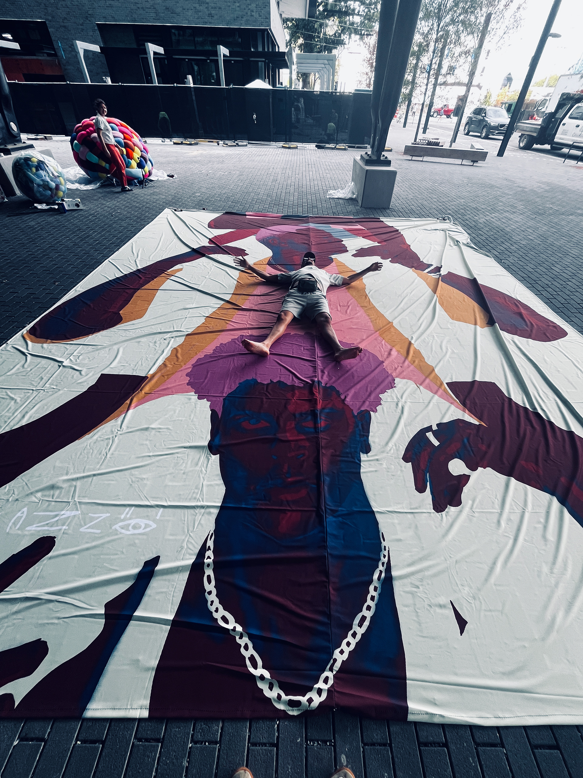 Created for Artville in Nashville, this installation by Shabazz Larkin explores the role of public art in activating shared spaces. Presented as part of the citywide arts festival, the work engages passersby through bold imagery and cultural storytelling, transforming the street into a site of reflection, curiosity, and community connection.
