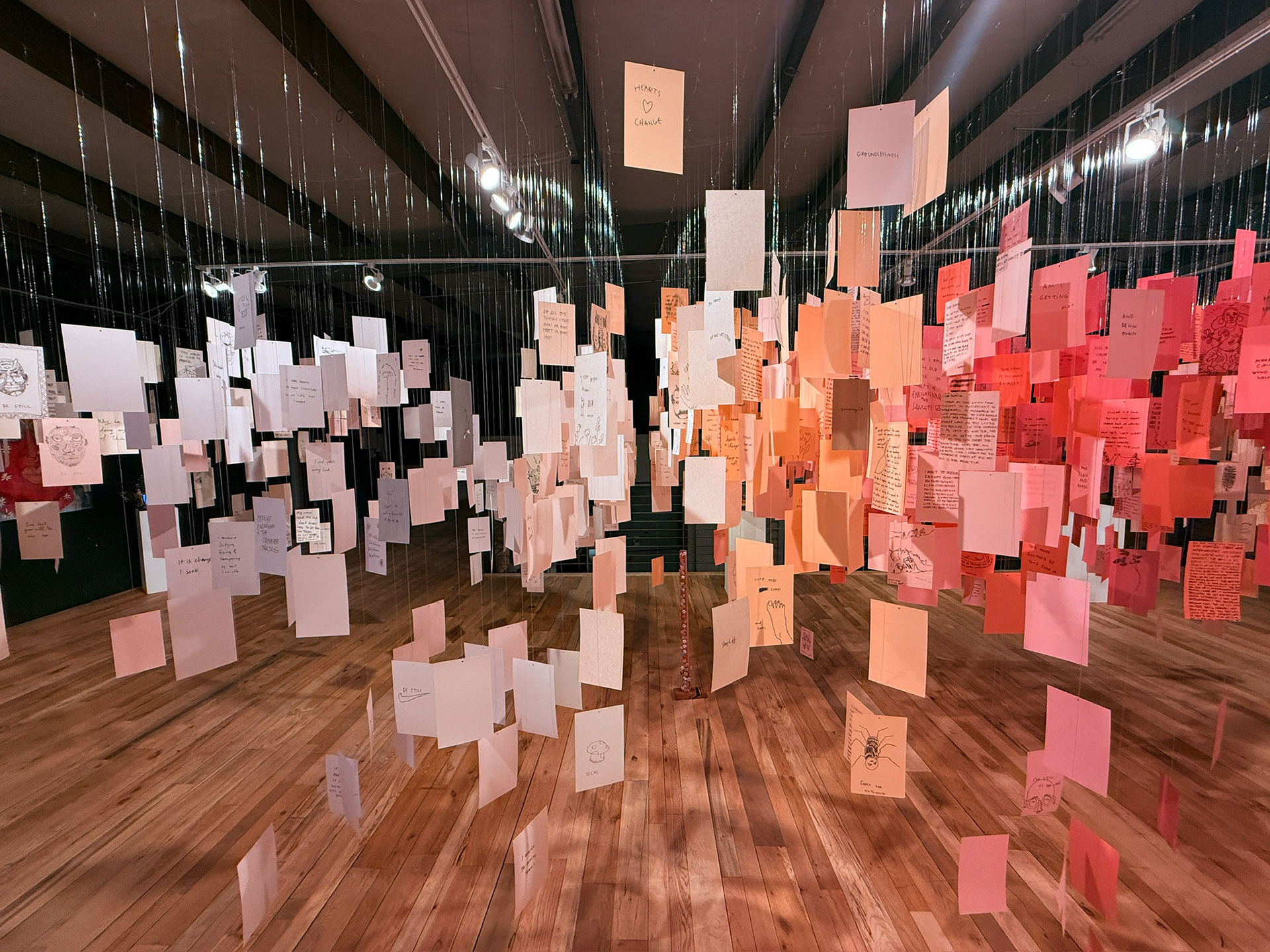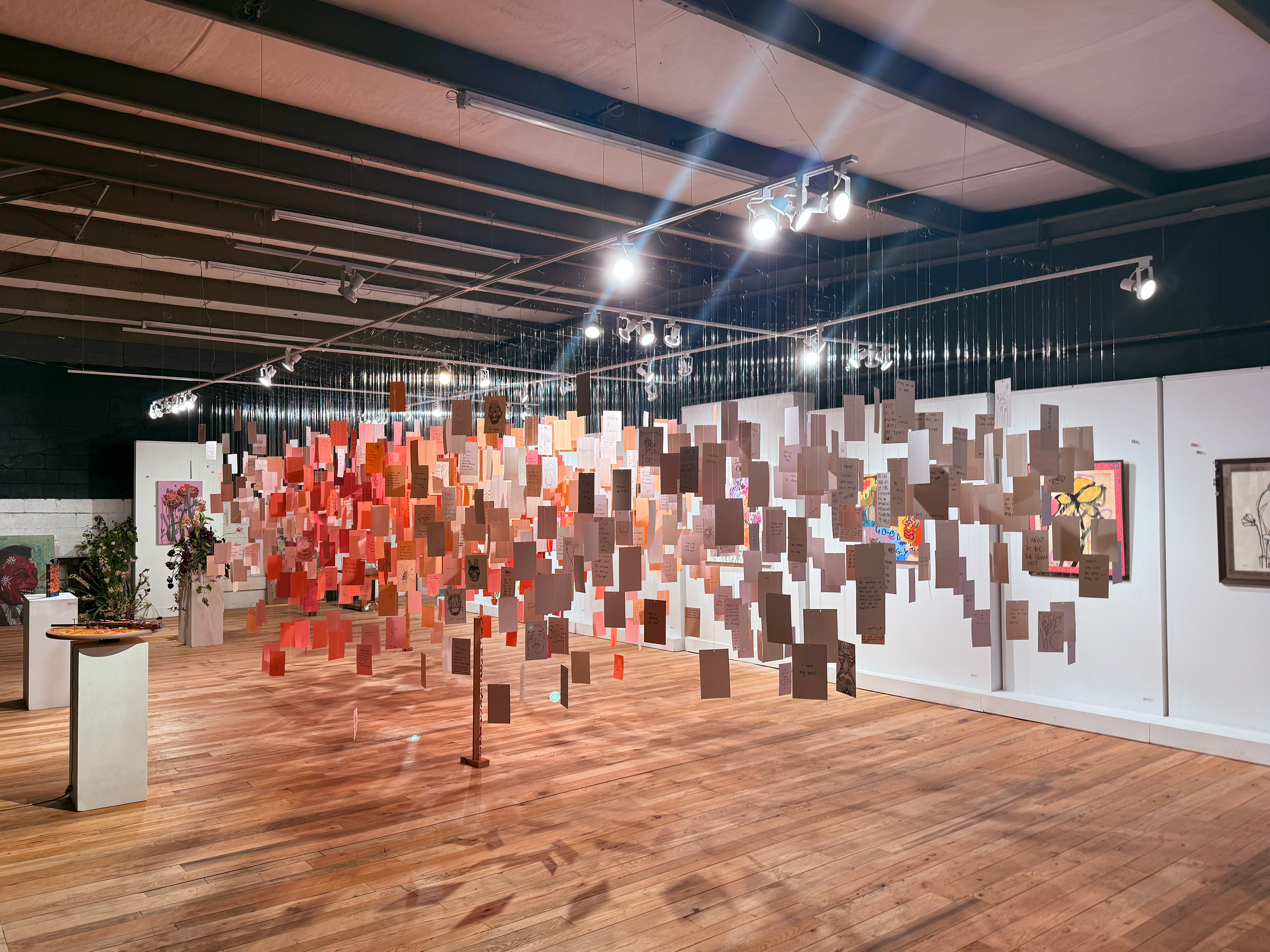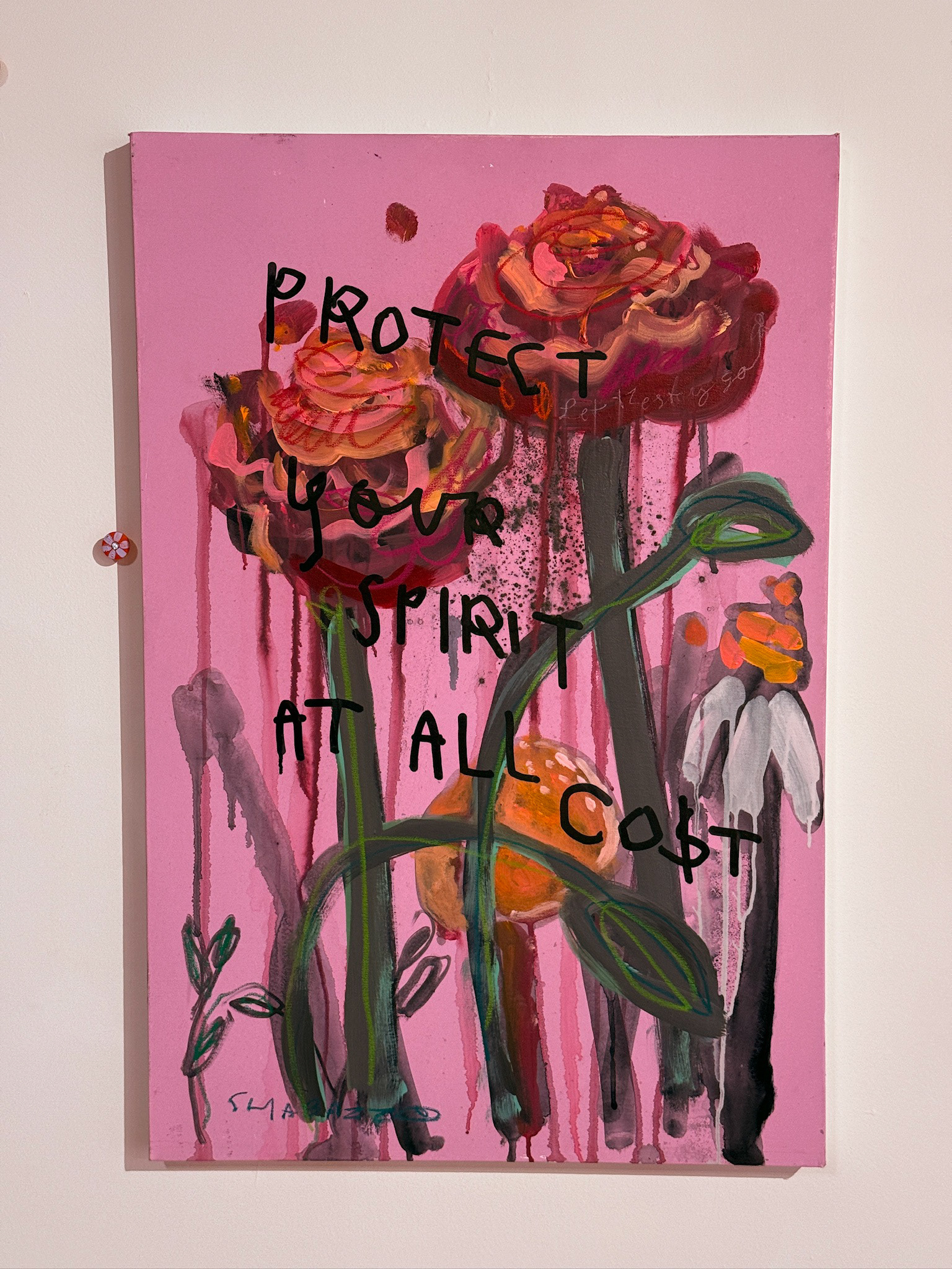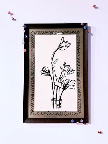 Flowers & Deamons is an immersive exhibition of paintings, sculpture, and over 1,200 intimate drawings that examines impermanence, fear, and the fragile nature of beauty. Flowers operate as both offering and reminder: what blooms also withers, and what is faced can lose its power. “Deamon Paintings” and sculptural figures adorned with flower-painted roofing nails reframe discomfort as a site of reflection, where creation and destruction meet.