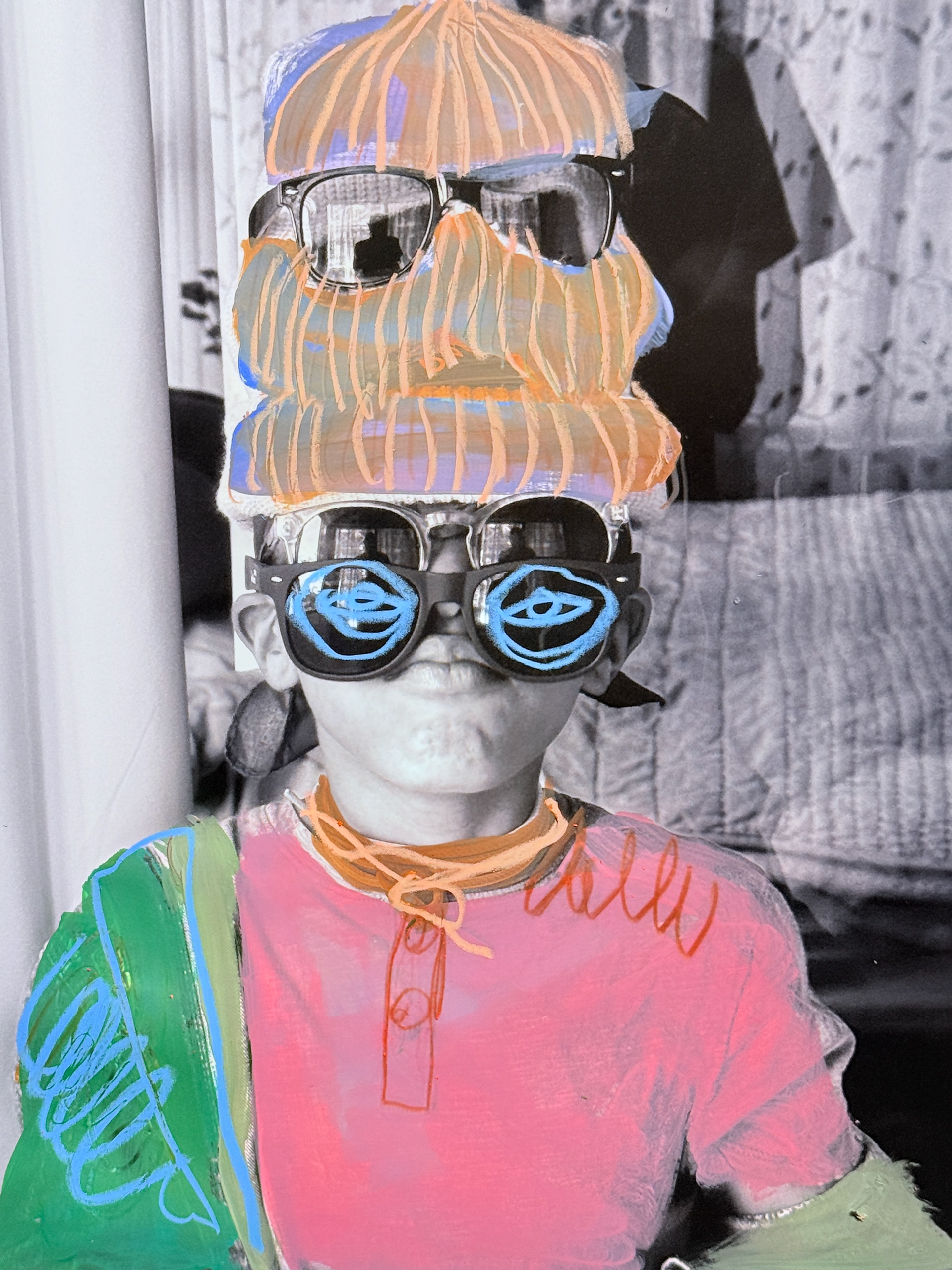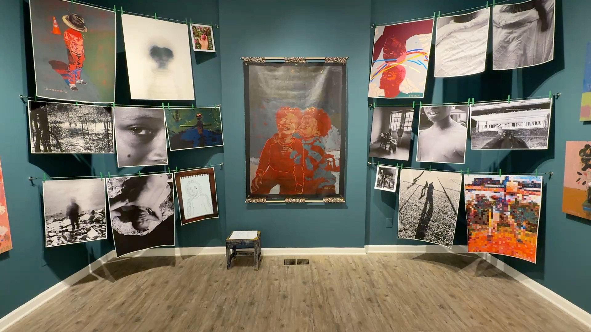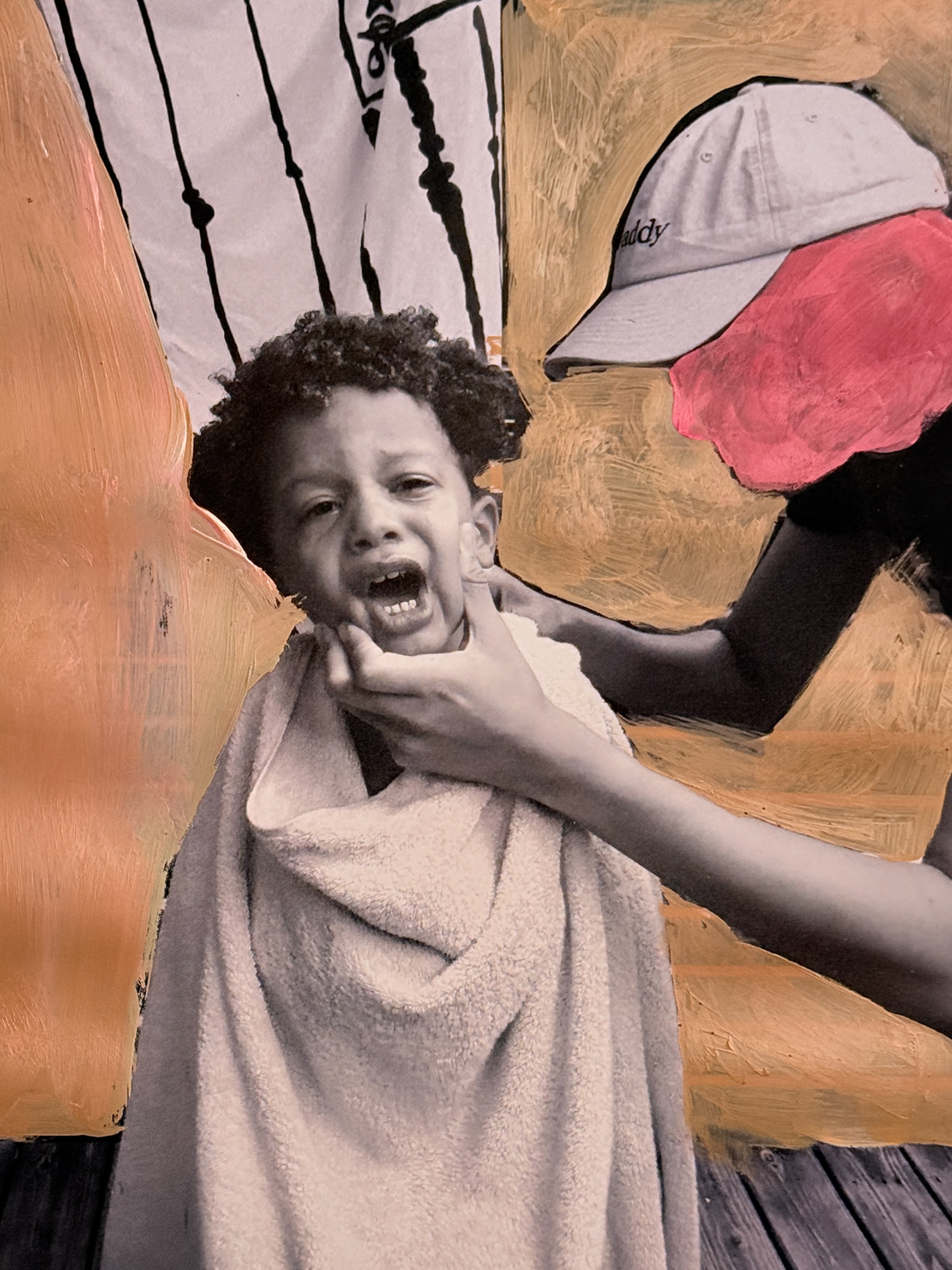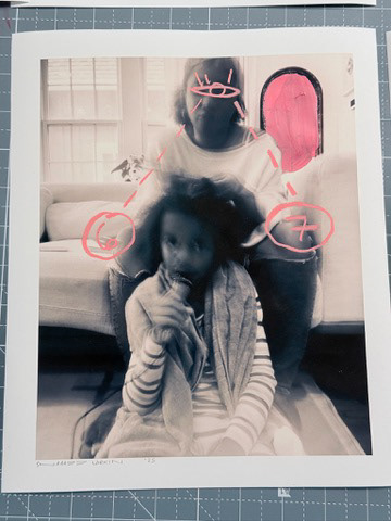 Created in collaboration with Shabazz’s sons, the photographs function as both record and raw material. They generate and inform the painted portraits and drawings throughout the space, revealing the photographic understructure beneath the finished works. Images are carried forward, translated, and layered rather than resolved.
