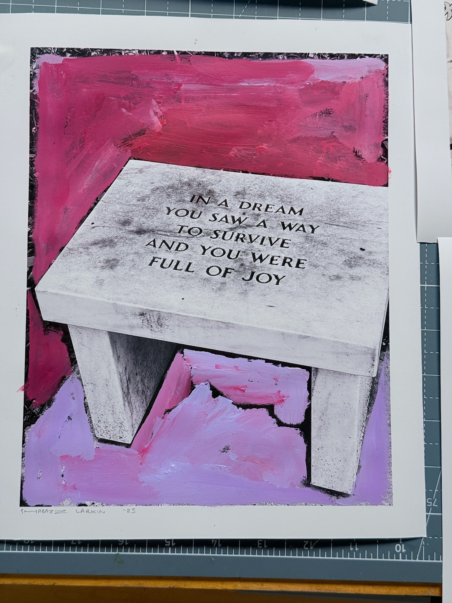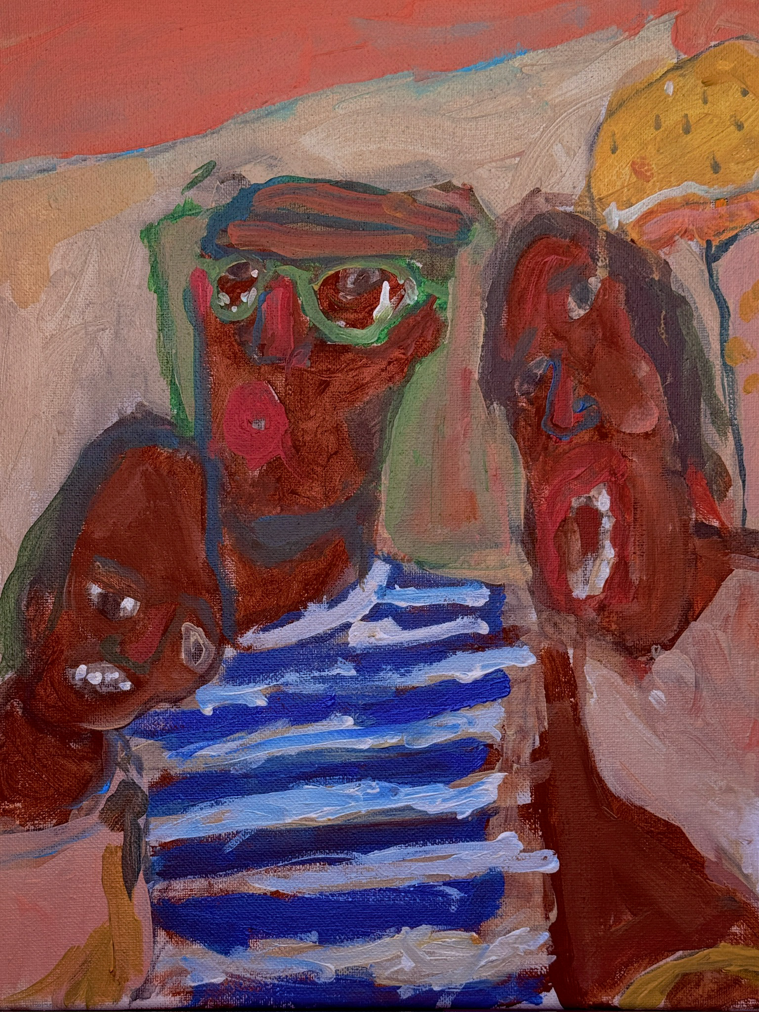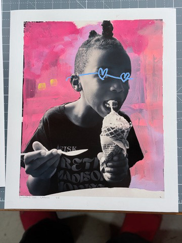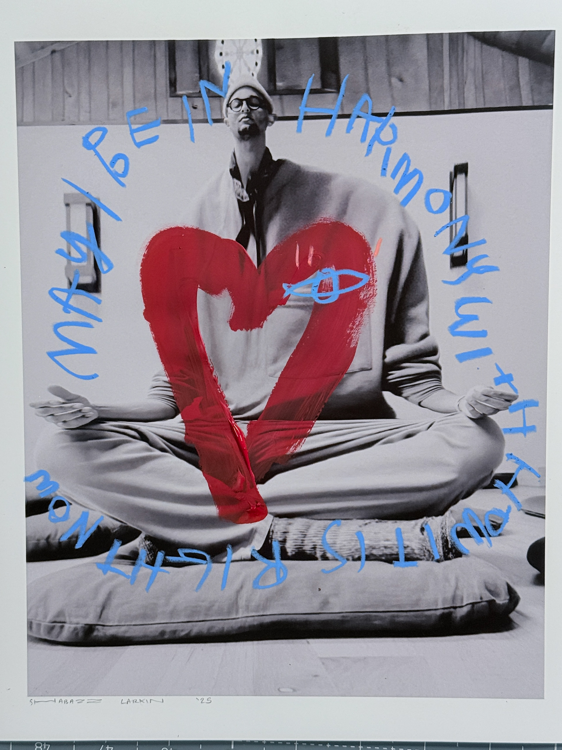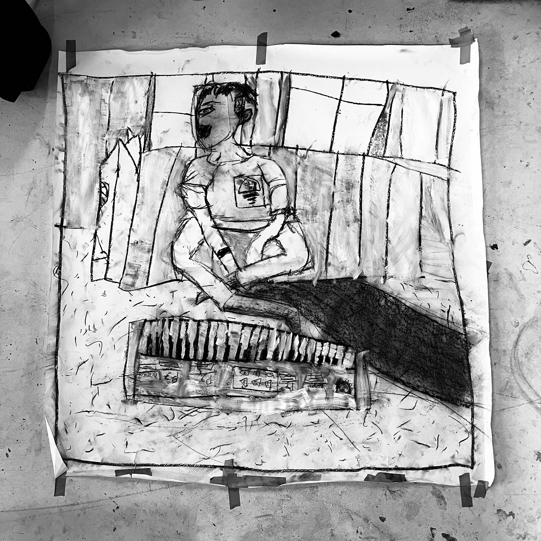 Created in collaboration with Shabazz’s sons, the photographs function as both record and raw material. They generate and inform the painted portraits and drawings throughout the space, revealing the photographic understructure beneath the finished works. Images are carried forward, translated, and layered rather than resolved.