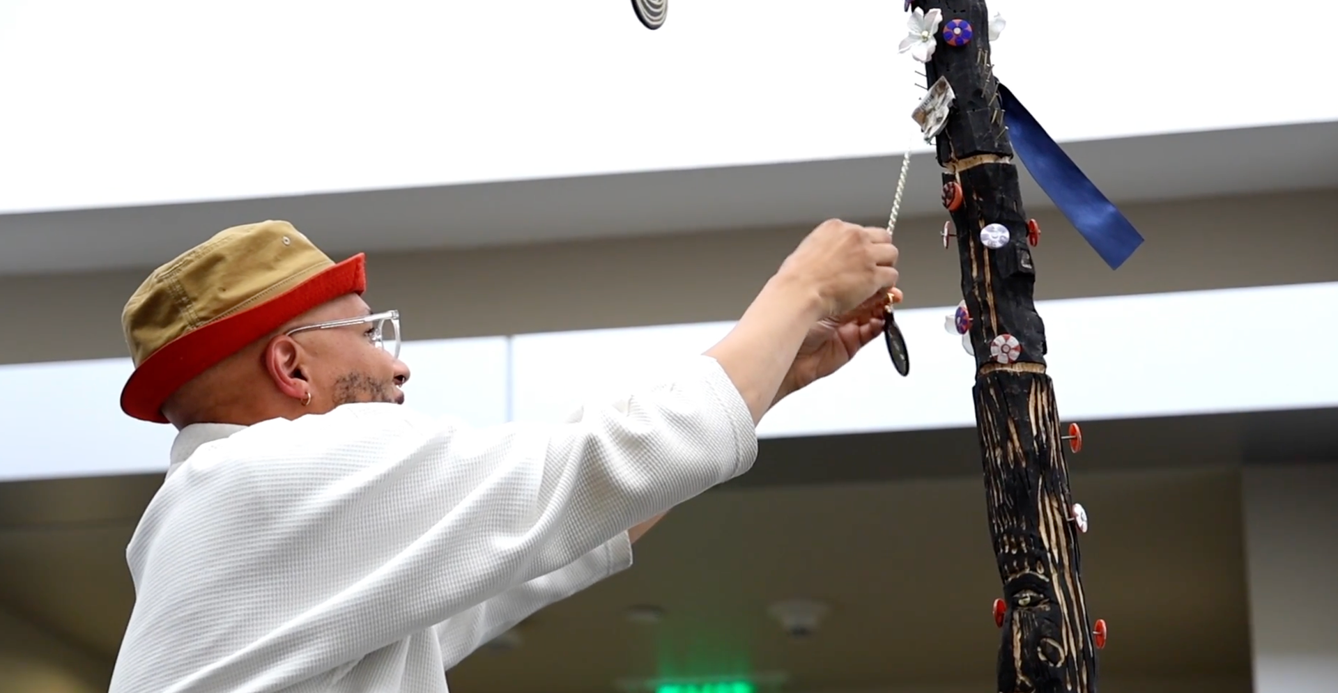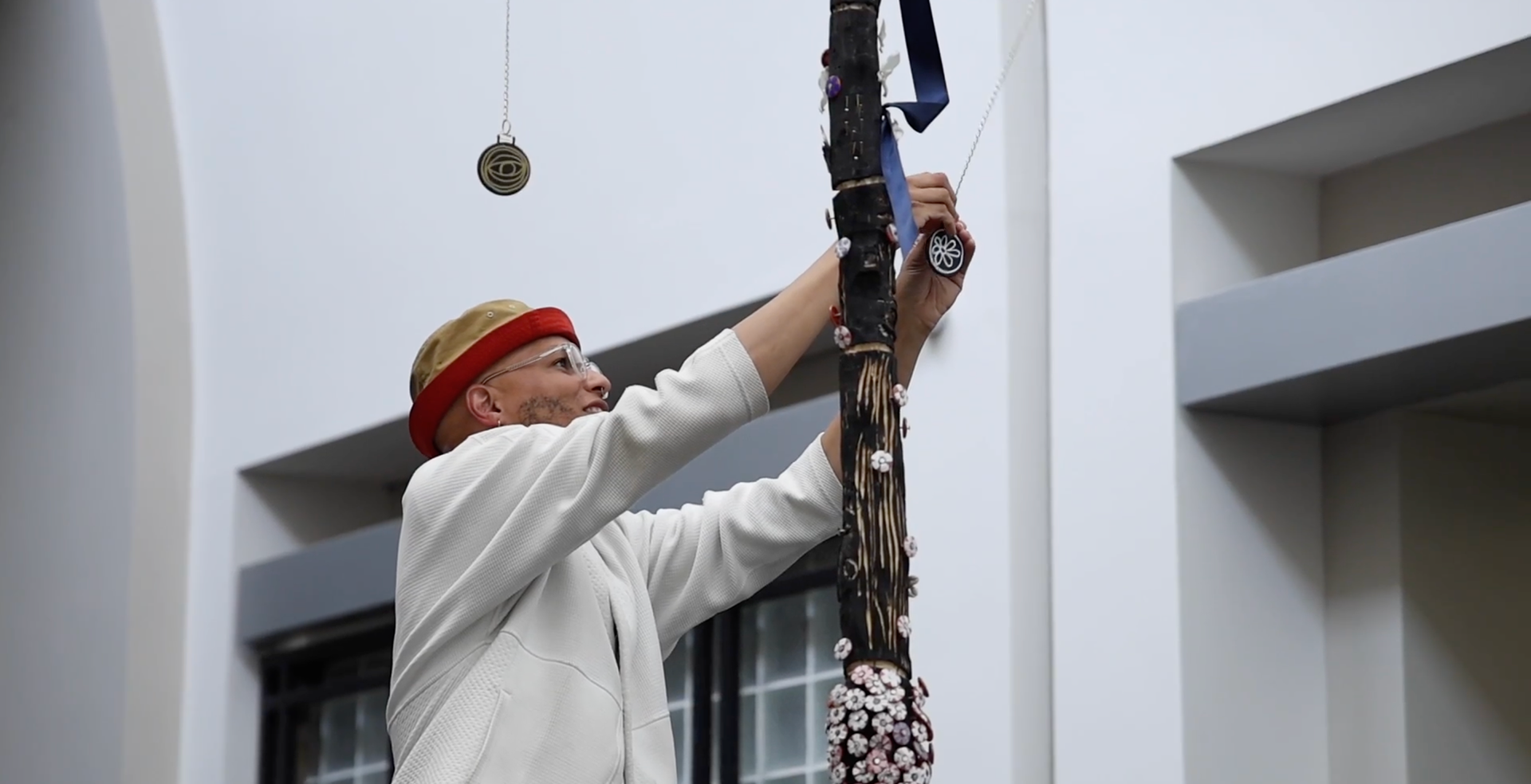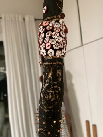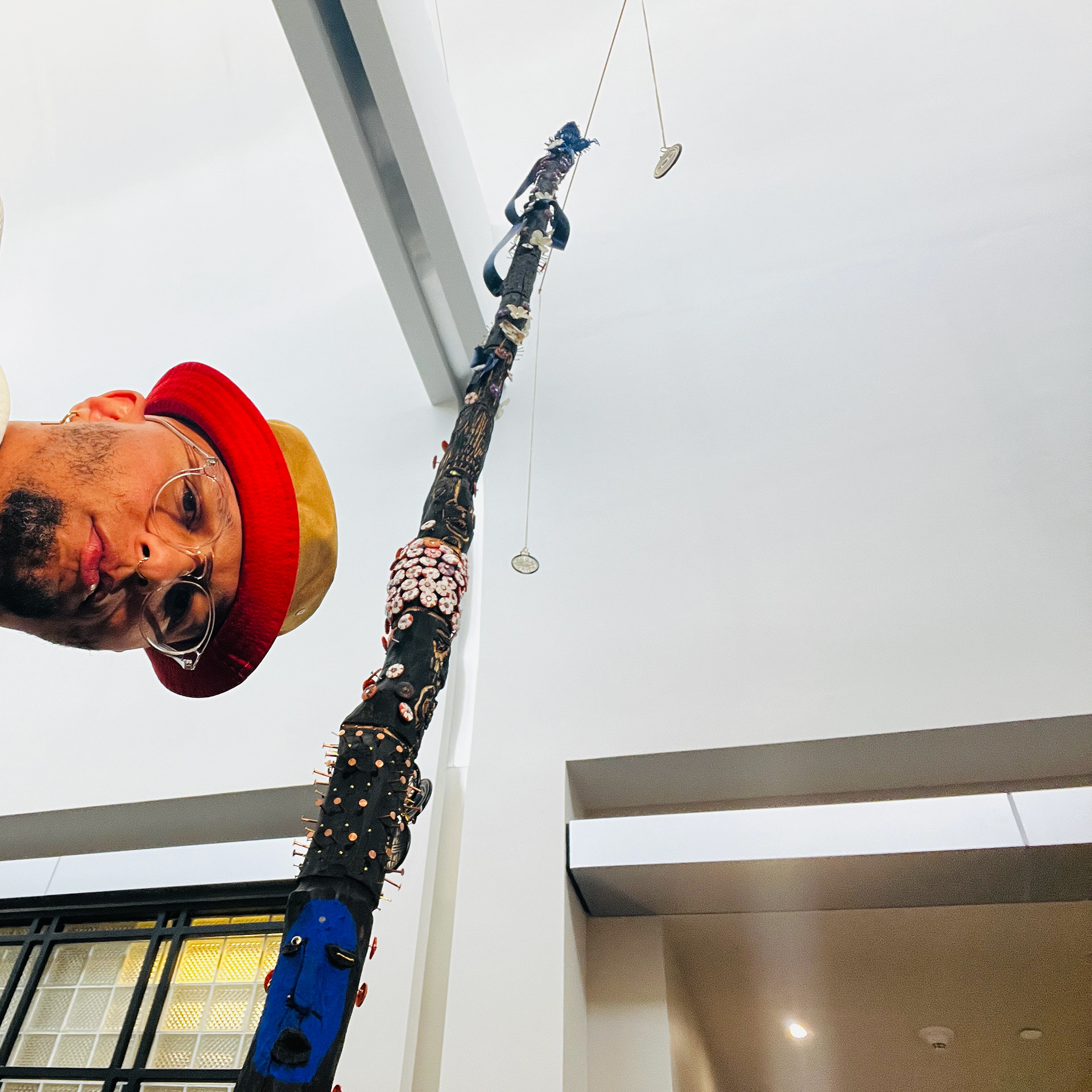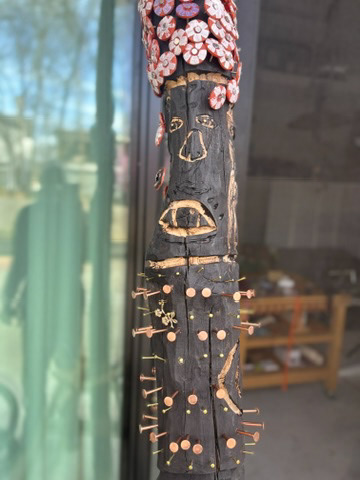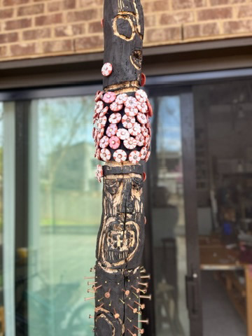 In keeping with the Nkisi Nkondi tradition, community members were invited to participate by adding nails to the sculpture. Each nail was placed as an act of witness—marking intention, accountability, grief, or protection—echoing the original role of Nkondi figures as communal vessels rather than solitary objects. Through this gesture, the work becomes not only carved form, but a shared record of belief, tension, and responsibility held together in public view.