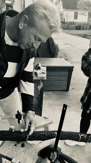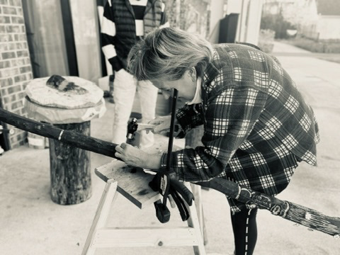 War / Delusion is a sculptural work carved from a salvaged tree, drawing inspiration from the Nkisi Nkondi tradition of the Kongo people of Central Africa—objects believed to be spiritually charged and created for protection, accountability, and communal witness. Historically marked with nails and offerings, Nkondi figures held memory, intention, and consequence within their bodies.