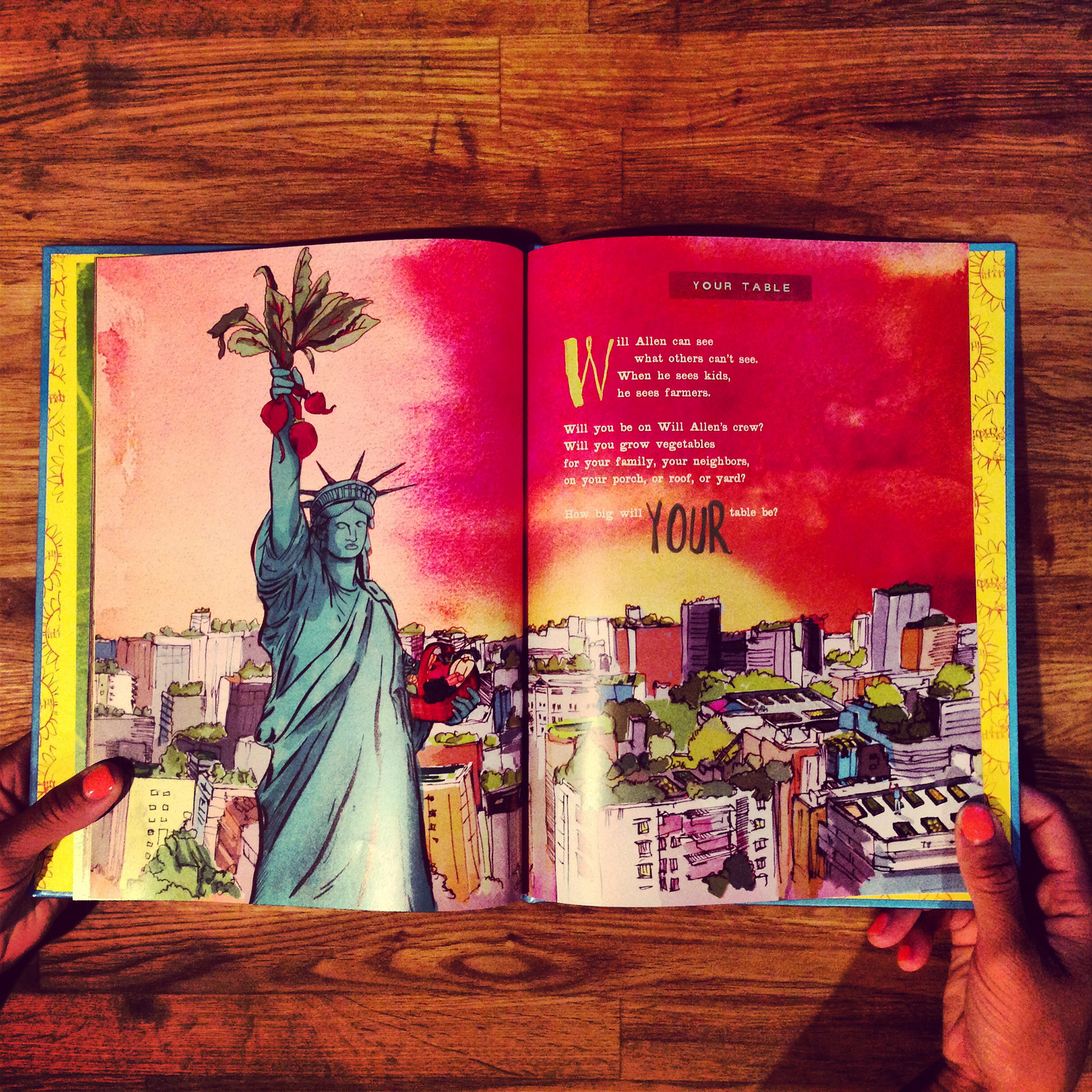 Farmer Will Allen and the Growing Table was my first published children’s book as an illustrator. The project brought together storytelling, agriculture, community history, and the idea that imagination can transform the places we live.